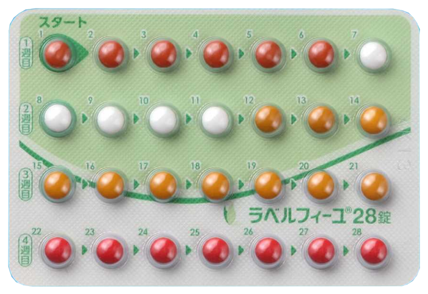 1シート内でエストロゲンとプロゲスチンの量が3段階に分かれています。自然の月経周期に合わせ、週(シート内の行)ごとに錠剤に含まれるホルモン量を増減させているため、身体にはより負担が少ないとされています。